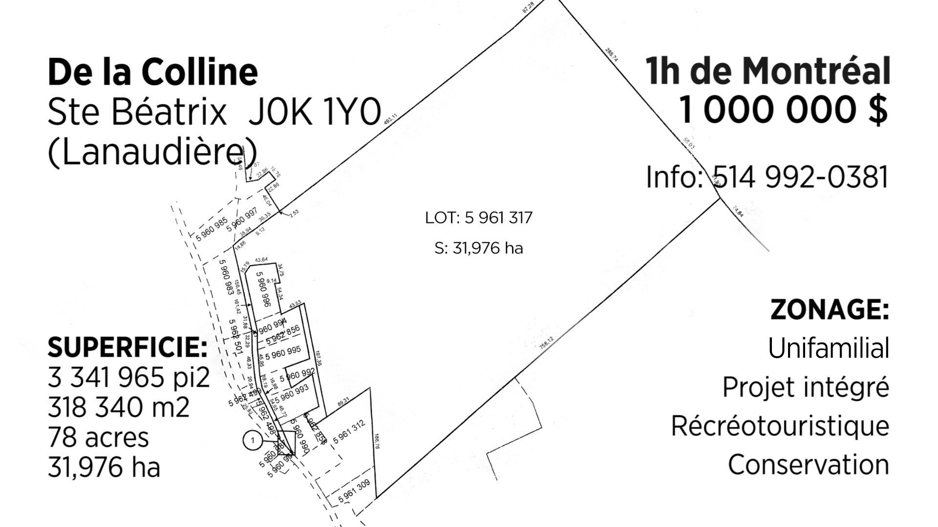 Terrain a vendre, De la Colline, Ste Béatrix J0K 1Y0 (Lanaudière)